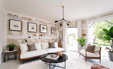 Al piano d'ingresso si trova il soggiorno con l'angolo cottura di 25 mq, la camera da letto matrimoniale di 15 mq ed il bagno finestrato. Al piano seminterrato, in parte fuori terra, sono presenti 2 ambienti, rispettivamente di 25 mq e 15 mq che possono essere adibiti a camera da letto e/o sala hobby con lavatoio di 4 mq. Completa la proprietà il portico da cui è consentito l'accesso al giardino angolare di 150 mq che verrà consegnato completo di manto erboso ed il box auto di 50 mq.