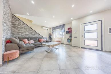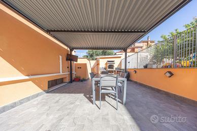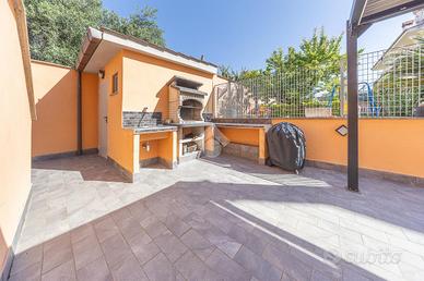 In una tranquilla traversa di Via di Vermicino, nella zona residenziale di Borghesiana, proponiamo in vendita una porzione angolare di trifamiliare completamente ristrutturata con materiali di pregio e dotazioni tecnologiche di ultima generazione.