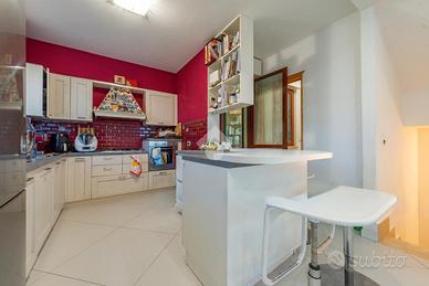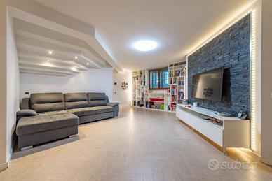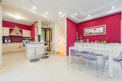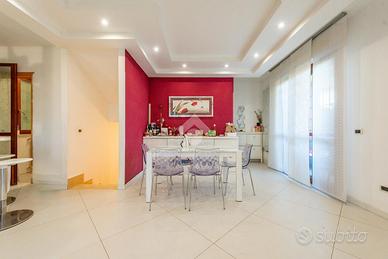 Torrino Mezzocammino - Via Franco Caprioli All'interno di un esclusivo complesso residenziale composto esclusivamente da ville, proponiamo in vendita una splendida villa capo schiera su tre livelli, completamente ristrutturata, dove ogni ambiente è stato curato nei dettagli per offrire eleganza, comfort e funzionalità. La proprietà è valorizzata da un piacevole giardino angolare, uno spazio verde riservato e ben curato che regala privacy e momenti di relax all'aria aperta, ideale per vivere la casa in ogni stagione. Al piano terra si viene accolti da un luminoso soggiorno con cucina a vista, un ambiente moderno e conviviale che rappresenta il cuore della casa. Completa il livello un bagno finestrato e un secondo salotto, reso particolarmente suggestivo dalla presenza di una stufa chiusa e arricchito da una pergotenda, perfetta per creare un'atmosfera accogliente e godibile tutto l'anno. Il primo piano, dedicato alla zona notte, offre spazi ampi e ben distribuiti: una camera matrimoniale luminosa, due camere da letto comode e due servizi, pensati per garantire praticità e comfort nella quotidianità. Al piano inferiore troviamo una spaziosa sala hobby, versatile e ideale come area relax, studio o zona tempo libero, completa di bagno. Completano la proprietà due posti auto, un valore aggiunto fondamentale per la comodità di tutta la famiglia. Una soluzione abitativa ideale per chi desidera indipendenza, tranquillità e qualità degli spazi, all'interno di un contesto residenziale curato e riservato.