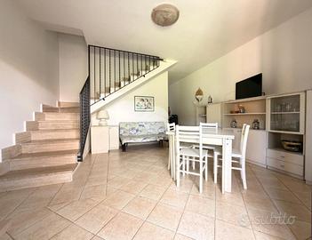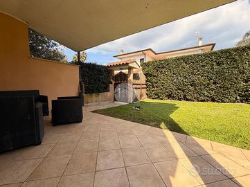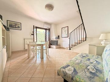 Proponiamo in vendita porzione di villa trifamiliare situata all'interno del tranquillo e curato residence Zeffiro 2, a circa 3 km dal centro di Sabaudia e a circa 2 km dal mare. L'immobile si sviluppa su due livelli ed è caratterizzato da una funzionale distribuzione degli spazi interni. Al piano terra troviamo un accogliente soggiorno con camino, una cucina e un comodo WC di servizio finestrato. La zona giorno è dotata di climatizzazione, garantendo comfort in ogni stagione, oltre alla presenza di impianto di riscaldamento con caldaia e termosifoni. Al primo piano si sviluppa la zona notte composta da due camere matrimoniali entrambe climatizzate: una con accesso al terrazzo e l'altra servita dal balcone. Completa il piano un bagno finestrato con box doccia. All'esterno, il giardino privato è delimitato da una siepe che garantisce un elevato livello di privacy, rendendo lo spazio ideale per momenti di relax all'aperto. La proprietà non necessita di particolari interventi di ristrutturazione, risultando immediatamente abitabile. Soluzione ideale sia come residenza principale che come casa vacanze, grazie alla posizione riservata ma ben collegata e alla vicinanza al mare.
