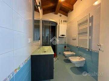 S. GIORGIO D. PERTICHE - ARSEGO - In quartiere residenziale, comoda a tutti i servizi che la zona offre quali scuole, supermercato, farmacia e fermata del bus, porzione di trifamiliare del 2012 sviluppata su 3 livelli. Al piano terra la soluzione è composta dalla zona giorno open space, abbiamo poi un bagno finestrato con doccia, dove è stata ricavata la lavanderia, e il garage, collegato internamente all'immoble, che ad oggi è però utilizzato come stanza. Dalla zona giorno si può inoltre accedere ad una pompeiana esposta a sud, perfetta per pranzi e cene con gli amici. Al piano primo troviamo la zona notte composta da due camere matrimoniali e da un ripostiglio finestrato, utilizzato come cabina armadio, dove si potrebbe però ricavare una camera singola, ed un bagno finestrato con doccia. Entrambe le camere matrimoniali sono servite da doppio poggiolo. Al piano secondo troviamo infine la zona mansardata, travata a vista, dove sono state ricavate due ulteriori stanze ed un bagno, finestrato con doccia. Completa la soluzione lo scoperto su tre lati, di circa 200mq. L'immobile si presenta in ottime condizioni, è dotato di clima ad ogni piano, riscaldamento a pavimento, serramenti e balconi in PVC.