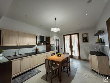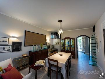 L'ingresso si apre su un luminoso soggiorno di generose dimensioni,comunicante con la cucina abitabile che affaccia direttamente sul giardino privato. Un luogo perfetto per momenti conviviali e relax.