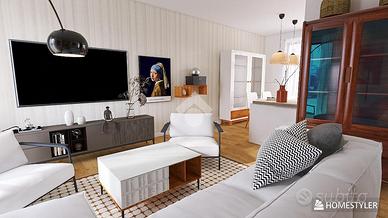 Il riscaldamento a pavimento, alimentato da una caldaia a pompa di calore elettrica, assicura un'efficienza energetica ottimale, supportata dai pannelli fotovoltaici che contribuiscono a una classe energetica A4.