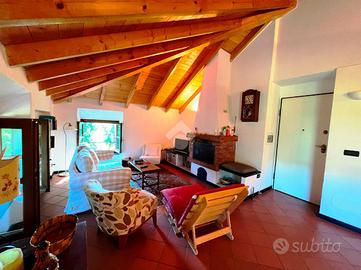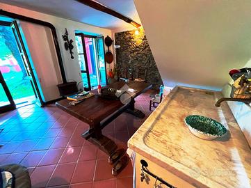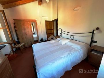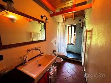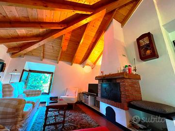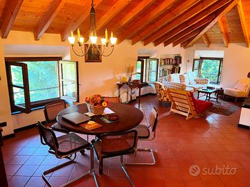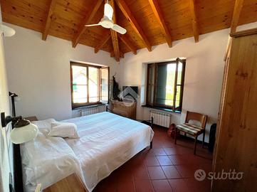 Ci troviamo a Valleregia e proponiamo in vendita porzione di Trifamiliare inserita in una villa signorile d'epoca ristrutturata in tutte le sue parti. L'abitazione si sviluppa al primo piano e attraverso la porta blindata accediamo subito al grandissimo soggiorno doppio che ci accoglie in ingresso. Quest'ultimo rimane molto luminoso con 3 finestre con vista sulla vallata. In questo grande vano abbiamo un camino a legna che rende il contesto con tetto a vista particolare e 'rustico' con dettagli e materiali di pregio. Attraverso un piccolo disimpegno accediamo alla cucina con uscita sul balcone ed alla zona notte; qui troviamo tre camere, due delle quali di dimensioni matrimoniali ed una più piccola ma con un'utile e spazioso soppalco. A completare la zona due bagni, uno dotato di doccia ed uno con vasca. Impianti recenti e funzionanti, riscaldamento autonomo ed infissi interni in legno doppio vetro con persiane blindate. Come pertinenze abbiamo dall'ingresso principale un bellissimo giardino pianeggiante dove soggiornare e rilassarsi, al piano terra invece abbiamo una zona in comune con spazio taverna/cucina con servizi, oltre una comoda cantina. Oltre al sopracitato giardino la proprietà dispone di spazio utilizzato per parcheggiare le auto e del terreno coltivabile.
