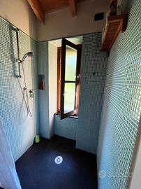 L'abitazione si sviluppa al primo piano e attraverso la porta blindata accediamo subito al grandissimo soggiorno doppio che ci accoglie in ingresso. Quest'ultimo rimane molto luminoso con 3 finestre con vista sulla vallata. In questo grande vano abbiamo un camino a legna che rende il contesto con tetto a vista particolare e 'rustico' con dettagli e materiali di pregio.