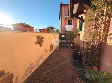 Nel cuore del pittoresco borgo ligure di San Cipriano, si trova una porzione di trifamiliare in vendita, perfetta per chi cerca una soluzione abitativa semindipendente. Questa proprietà, si sviluppa su più livelli e offre un ingresso indipendente che garantisce privacy e autonomia. Con una superficie di 106 mq, l'immobile comprende cinque locali, tra cui una zona giorno in open space al piano terra con bellissimo camino, tre camere da letto di ottime dimensioni, una delle quali con ampia cabina armadio e due bagni (uno per piano). In ingresso al piano terra ad accoglierci un funzionale spazio esterno piastrellato con zona barbeque che offre un'area ideale per momenti di relax all'aperto. La casa è dotata di aria condizionata e sistema di allarme, assicurando comfort e sicurezza. Situata a breve distanza dalla suggestiva Piazza S. Cipriano, questa abitazione rappresenta un'opportunità unica per vivere in un contesto tranquillo e caratteristico.