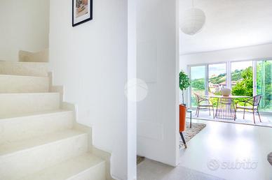 Soluzione ottimizzata secondo le più recenti normative edilizie in merito all'antisismica, riscaldamento in pompa di calore senza allaccio alla rete metano, infissi con triplo vetro, impianoto fotovoltaico.