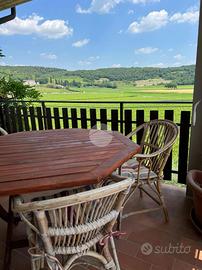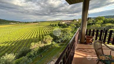 L'immobile si apre su un accogliente soggiorno con camino e angolo cottura e si sviluppa con due camere da letto, un bagno finestrato e un pratico ripostiglio. Il terrazzo regala una suggestiva vista panoramica su villa veneta e forte austriaco, immersi tra ulivi e vigneti, offrendo un'atmosfera di assoluta tranquillità e privacy.
