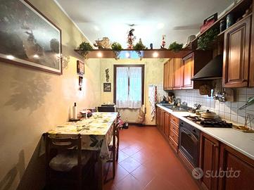 In centro al paese, comoda a tutti i servizi che la zona offre quali scuola, autobus, bar, farmacia e supermercato, porzione di trifamiliare di testa con giardino, esposto a sud-ovest.