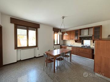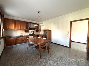 -OTTIMA OPPORTUNITA'- Interessante porzione di trifamiliare edificata a metà degli anni '80, a dieci minuti a piedi dal centro paese con scoperto invidiabile di ben mq 500 circa su due lati, sviluppata su due livelli fuori terra e così distribuita: al piano terra ingresso, soggiorno, ampia cucina separata e abitabile e garage comunicante. Al piano primo comodo disimpegno, tre ampie camere da letto, bagno con vasca e poggiolo. Il riscaldamento è autonomo con caldaia a condensazione sostituita nel 2019, il climatizzatore mono split è installato al piano primo. METRATURE: Ingresso-soggiorno mq 30 - cucina mq 20 - camera (1) mq 17 - camera (2) mq 12 - camera (3) mq 11 - bagno mq 5 - terrazza mq 7 - garage mq 13. APE IN AGGIORNAMENTO! Per maggiori informazioni o per prenotare una visita chiama lo oppure scrivi a zerobranco@domus-nova.net