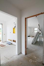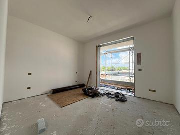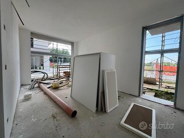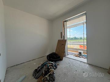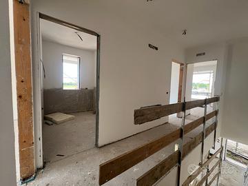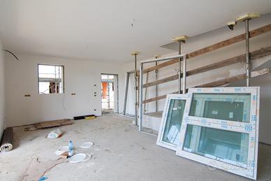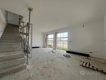 Proponiamo in vendita, in nuovo quartiere residenziale, splendida porzione di trifamiliare. L'immobile si distingue per il suo stile moderno e raffinato, con grande attenzione ai dettagli. La villa è così suddivisa: al piano terra scoperto privato che offre uno spazio esterno ideale per momenti di relax e svago. Ampio ingresso/soggiorno di 40 mq e cucina che si apre sul giardino privato attraverso ampie vetrate scorrevoli, creando un ambiente luminoso e accogliente, 1 bagno finestrato, disimpegno e scale interne. Al piano primo 2 camere matrimoniali di cui una con cabina armadio ed entrambe con uscita sul terrazzo, 1 camera singola e 1 bagno finestrato. L' ingresso pedonale e carraio indipendenti, con posti auto esterni e un garage collegato, saranno ad uso esclusivo e privato, offrendo privacy e sicurezza ai residenti. È possibile personalizzare le finiture interne scegliendole dal capitolato e godere di caratteristiche come riscaldamento a pavimento incluso in garage, impianto fotovoltaico dedicato di 3 kw, predisposizione per domotica grazie alla classificazione energetica in A4, VMC puntuale, aria condizionata, tapparelle coibentate motorizzate e infissi esterni in PVC. Per ulteriori dettagli su questa proprietà e fissare un'eventuale visita in cantiere vi consigliamo di recarvi in agenzia.