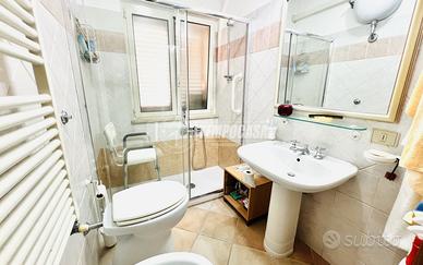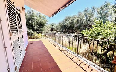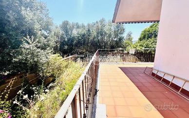 Porzione di Trifamiliare Via Terme di Traiano con 3 camere 2 bagni giardino angolare cosi composta PS: salone doppio con uscita sul giardino angolare di 180 mq 2 camere da letto bagno completo finestrato con doccia e 2 ampi ripostigli, Predisposizione per camino (canna fumaria già presente). P1 : salone con cucina a vista con uscita sull'ampio patio di 80mq una camera da letto matrimoniale sempre con uscita sul terrazzo e bagno. La villa si presenta in ottime condizioni ed è anche molto luminosa perchè ha una visuale libera davanti inoltre è termoautonoma, climatizzata, dotata di zanzariere e con possibilità di parcheggio all'interno del cancello fino a 3 auto. - Classe: F