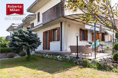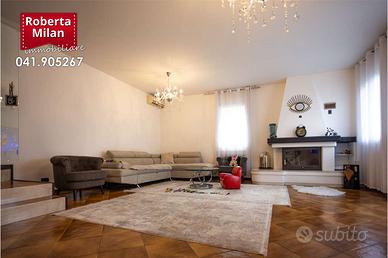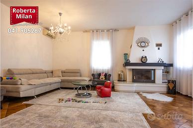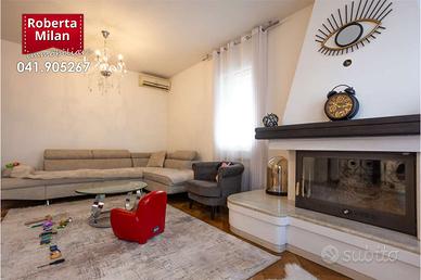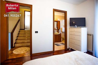 Entrando si nota subito la particolarità del salone leggermente rialzato rispetto l'ingresso ed il caminetto fa da padrone della stanza. Gode di una cucina abitabile ben attrezzata ed anche il piano terra ha il suo servizio. La zona notte offre tre camere da letto di cui due matrimoniali (una con bagno en suite), un altro bagno al piano e due terrazze.
