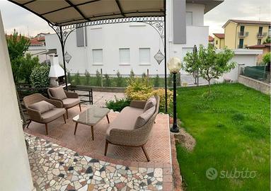 Ha un giardino privato delle dimensioni giuste per chi non vuole esserne schiavo, ma di goderlo quotidianamente con la famiglia e gli amici: ha un angolo barbecue con gazebo ed irrigazione automatica.