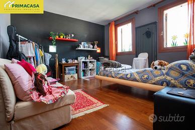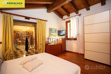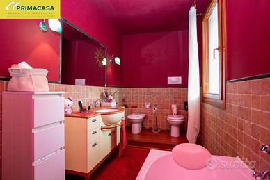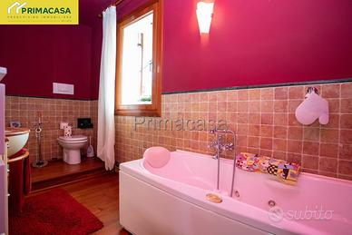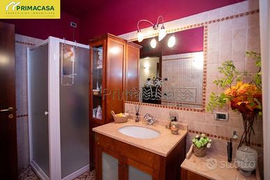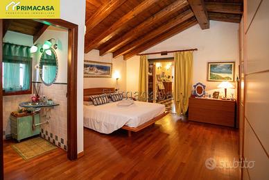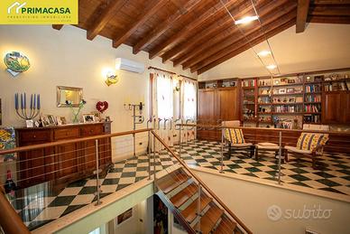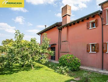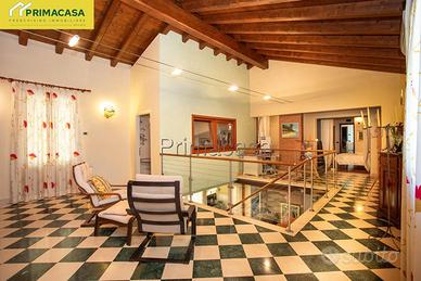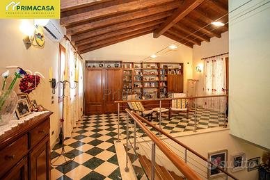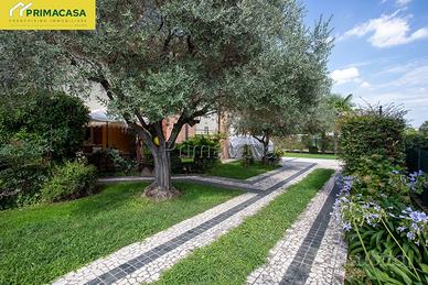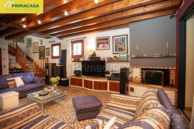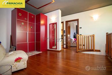 In una tranquilla e riservata zona residenziale, a breve distanza dal centro del paese, proponiamo in vendita un'elegante porzione di villa bifamiliare, edificata nei primi anni 2000, circondata da un ampio e curato giardino privato di circa 900 mq. L'immobile, contraddistinto da finiture di pregio e spazi generosi, si sviluppa su due livelli. Al piano terra si accede a una luminosa zona giorno composta da un ampio soggiorno con angolo cottura di circa 46 mq, comunicante con un salotto di generose dimensioni. Completano il piano: disimpegni, un bagno di servizio, due vani tecnici adibiti a lavanderia/ripostiglio e due spaziosi garage con basculanti elettrici. Al piano superiore si trova la camera padronale di 22 mq dotata di bagno privato e terrazzo esclusivo, oltre a due ulteriori camere matrimoniali servite da un secondo bagno. A completamento del piano, è presente un'ampia stanza multifunzionale, ideale come studio, sala hobby o ulteriore camera, con annesso ripostiglio per un totale di quasi 30 mq. L'abitazione è stata oggetto di un'importante opera di riqualificazione energetica, grazie alla quale sono stati effettuati interventi significativi, tra cui: installazione di pannelli fotovoltaici da 6 kW con sistema di accumulo da 10 kWh, isolamento termico interno, installazione di una stufa a pellets e l' impianto di climatizzazione caldo/freddo. La proprietà è inoltre dotata di numerosi comfort e dotazioni tecnologiche, tra cui: sistema di allarme perimetrale con videosorveglianza, impianto di aspirazione centralizzato, addolcitore d'acqua, colonnina di ricarica per veicoli elettrici, impianto di irrigazione automatica e fontana in giardino. Questa soluzione è ideale per chi desidera vivere in un contesto riservato, senza rinunciare alla vicinanza ai servizi e a standard abitativi elevati. RIF 71