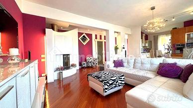 Si apre sul soggiorno open space, con camino di design e balcone. Seguono 2 camere matrimoniali, bagno con idromassaggio e grande cabina armadio/ studio o terza camera.