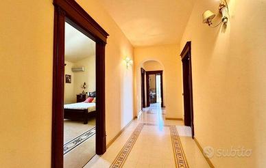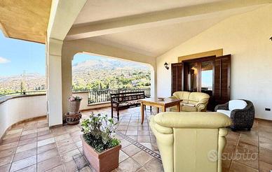 La casa dispone di cinque camere da letto, spaziose e confortevoli, adatte a tutta la famiglia e infine tre bagni, garantendo privacy e comodità per tutti. Uscendo dai due saloni troviamo un ampio terrazzo con vista panoramica sul mare e sulle montagne circostanti, ideale per rilassarsi al tramonto.