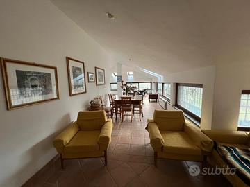 Porzione di Villa, al primo piano con due/tre stanze da letto, due bagni, cucina abitabile, soggiorno e sala. Termo autonoma con amplio terreno circostante, molto luminosa e completamente arredata.