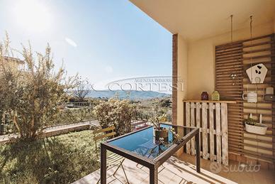 L'abitazione gode di un ottima esposizione, che va da sud-est all'ovest, con una piacevole vista sulle colline e sulle campagne verso Bettona.