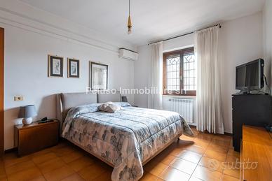 L'immobile, edificato negli anni '80 gode di ottima esposizione solare Sud/Ovest e Nord/Ovest ed è disposto su tre livelli. L'accesso è al piano terra rialzato direttamente dal giardino privato: dall'ingresso si accede al salone ampio e luminoso e alla cucina abitabile attigua servita da un balcone e un bagno di servizio. Il primo piano è completamente dedicato alla zona notte, dove troviamo una camera matrimoniale, due camerette, un secondo servizio finestrato e un ulteriore balcone. Al piano seminterrato è presente una confortevole sala hobby di circa 23 mq, pavimentata recentemente e aerata tramite finestre a bocca di lupo.