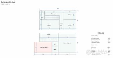Con una superficie totale utile di 100 mq, l'immobile si sviluppa su due piani ben distribuiti. Al piano terra troverai un'accogliente zona ingresso che conduce ad un luminoso soggiorno-cottura, un bagno, un garage e verde privato con ulteriore accesso carraio per altri posti auto interni al tua proprietà.