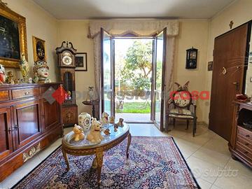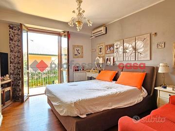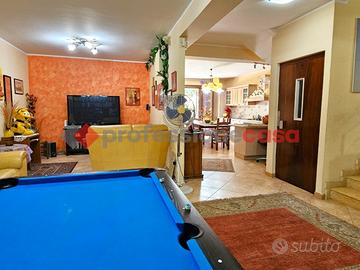 Professionecasa Paesi Etnei propone in vendita nei pressi del Viale Europa a San Gregorio di Catania, esattamente in Via Dante Alighieri, splendida villa accorpata, costruzione 2005, disposta su quattro livelli e dotata di garage di 25 mq ed un giardino privato. La proprietà si sviluppa per una superficie di 250 mq distribuiti in nove vani, ed è così composta: al piano cantinato è presente un salone doppio con camino, cucina abitabile e bagno; al piano terra troviamo un ulteriore soggiorno di due vani, cucina abitabile, bagno e lavanderia; il primo piano comprende due camere da letto, una camera matrimoniale con cabina armadio e bagno privato, e servizio; infine al piano mansardato sono presenti due camere e bagno. Lo spazio esterno comprende un giardino di 60 mq ed un terrazzo al piano terra, tre balconi al primo piano ed un terrazzino al piano mansardato. La villa dispone di impianto di videosorveglianza, antifurto, comodo ascensore, riscaldamento autonomo, climatizzatori e gruppo elettrogeno. Completa la vendita garage di 25 mq con accesso carrabile privato e due posti auto.
