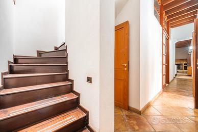 L'immobile, strutturato su due livelli, è dotato di un grande accesso carrabile sulla corte interna che può ospitare 2/3 posti auto. Al piano terra troviamo un'ampia zona living con camino, soppalco e cantina, ideale per trascorrere piacevoli momenti di relax e convivialità con amici e parenti, una luminosissima cucina con zona pranzo, camino, SPA e camera singola con bagno privato. Il primo piano è composto da due ambienti separati dove sono presenti tre ampie camere da letto dotate di bagno privato, prospicenti la terrazza panoramica che si affaccia sulla corte interna.