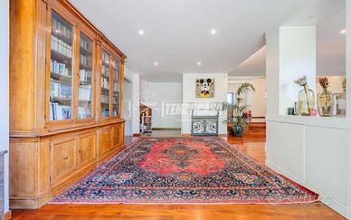 Ogni dettaglio è stato pensato per garantire il massimo comfort: le finiture di pregio, le ampie vetrate che inondano gli ambienti di luce naturale e gli spazi interni generosi donano un'atmosfera raffinata e accogliente. Due maestosi saloni, entrambi con camino, una sala hobby, uno studio, cinque camere da letto, quattro bagni e due spaziose cucine abitabili compongono l'interno della residenza.
