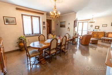 Avigliana - Via Bacchiasso - La Tempocasa di Avigliana è lieta di proporre in vendita maestosa villa indipendente bifamiliare libera sui quattro lati, dalla metratura ricercata con ampio e curatissimo giardino privato. L'immobile è sito in zona tranquilla e soleggiata, posizionata nelle vicinanze del centro di Avigliana. Dal cancello principale attraverso il vialetto giungiamo alla porta di ingresso della soluzione, tramite la stessa come primo ambiente troviamo l'ampissimo salone doppio suddiviso tra zona pranzo e zona relax essa dotata di camino a legna e di ampi finestrati molto luminosi con sfogo sul porticato frontale della Villa. Subito adiacente alla zona pranzo troviamo la luminosa e grande cucina abitabile dotata di porta finestra che da sfogo sul pergolato di glicine del giardino utilizzato come zona pranzo estiva. Dalla sala da pranzo accediamo al disimpegno della zona notte che conduce alla prima camera da letto matrimoniale e al primo bagno. Dal secondo disimpegno accediamo all'altra camera matrimoniale del piano, ad oggi adibita a studio ed al secondo bagno. Dalla comoda scala interna (ben disimpegnata da bussola) interamente in marmo saliamo al piano primo, dove accediamo alla seconda abitazione anche qui troviamo un ampio salone accessoriato di camino a legna, con sfogo esterno sul terrazzino con bellissima vista ad ovest in direzione Castello e Sacra di S.M.; la seconda cucina abitabile è ben disimpegnata, ed adiacente al salone troviamo un comodo e spazioso ripostiglio. Dal corridoio del piano accediamo alle altre tre luminose camere da letto ed al terzo ed ultimo bagno accessoriato di box doccia. Scendendo dal precedentemente citato vano scala accediamo al piano seminterrato, dove sulla sinistra troviamo un corridoio di disimpegno che porta alla lavanderia e alla spaziosa cantina(ambienti entrambi finest - Classe: F