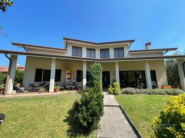 In zona residenziale tranquilla, prestigiosa villa indipendente attorniata da un curato giardino piantumato di oltre 1.100 mq, completamente recintata. Si distingue per la generosità degli spazi e la versatilità della disposizione, composta a tutti gli effetti da due appartamenti, rendendola perfetta anche come BIFAMILIARE completa. Al piano terra troviamo un elegante porticato, l'ingresso sull'ampio soggiorno-pranzo con caminetto, cucina abitabile, bagno finestrato e tre belle camere da letto. Il primo piano, accessibile da vano scale con possibilità di ricavare il secondo ingresso indipendente, offre spaziosi vani da poter sfruttare come studio, camere o stanze ospiti, con predisposizione per cucina. Il seminterrato si completa con lavanderia, bagno doccia, classica taverna friulana, ripostiglio, disimpegno, sala termica, ampio garage e la più tradizionale delle cantine. Perfetta per famiglie numerose, due nuclei familiari o professionisti in cerca di comfort, spazio ed indipendenza. RIF. 202050 Per maggiori informazioni visita www.grupposirio.com.