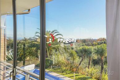 SOIANO DEL LAGO (BS) - In posizione indisturbata, con panoramica vista lago, affacciata sugli uliveti, villa prestigiosa su di un unico piano con dependance per gli ospiti, con piscina privata riscaldata, composta da: