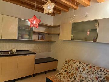 Immobile di pregio con ingresso al PIANO RIALZATO su ampia zona giorno, angolo cottura e bagno finestrato con doccia.