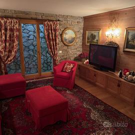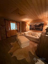 Bellissima abitazione arredata in stile cortinese, con tre camere due bagni ,due salotti , ampia cucina con garage doppi e cantina riscaldamento autonomo ampio terrazzo esterno e giardino