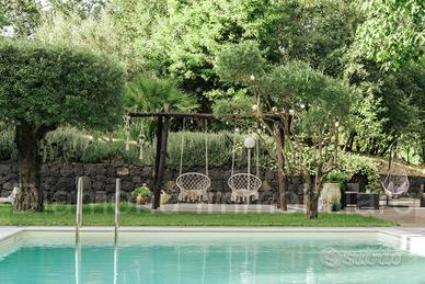 La Diamond immobiliare propone in vendita a Linguaglossa una bellissima proprietà immersa nel verde composta da un rustico ( ex palmento ristrutturato ) di ca 80 mq ed un terremo di ca 5.000 mq costituito da diverse zone come ad esempio : parcheggio , piscina , relax , giochi e barbecue ; il tutto molto curato sia dal punto di vista di manutenzione che per quanto riguarda i servizi . Ottimo come struttura ricettiva ( casa vacanza o per feste di compleanni , ma anche per casa di villeggiatura .Distante solo 15 minuti dallo svincolo autostradale di Fiumefreddo di Sicilia, 20 minuti da Piano Provenzana e 50 minuti dall'aeroporto di Catania.