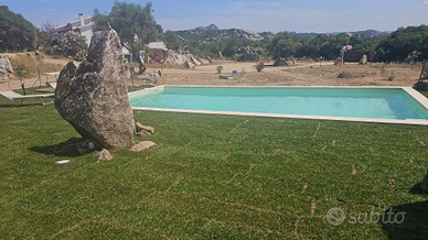 Proprietà unica nel suo genere ad Arzachena, immersa in 5 ettari di natura mediterranea a pochi minuti da Palau e dalle spiagge della Costa Smeralda, ideale sia come residenza privata di pregio sia come investimento turistico già autorizzato. La villa principale si sviluppa su due livelli per un totale di 280 m², con ingressi indipendenti e ambienti luminosi, perfetta da vivere tutto l'anno o per ampliare l'offerta ricettiva. La tenuta comprende inoltre 9 unità indipendenti, tra cui 7 camere doppie e triple con bagno privato e veranda esterna, e 2 locali con ingresso autonomo, ideali per ospiti che cercano natura, privacy e comfort. Completano la proprietà ha una sala esterna di 100 m² in legno e ampie aperture, una cucina professionale di 40 m² completamente attrezzata, bagno clienti e magazzino di 40 m², tutti con accesso indipendente, e una splendida piscina privata immersa nel verde, ideale per relax e eventi.
