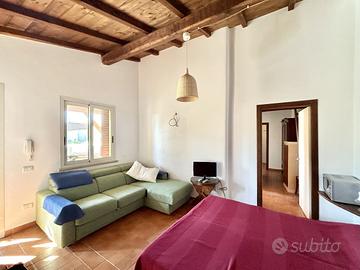 (Riferimento: 1465PU) OIKADE.it Consulenze Immobiliari propone in vendita nel comune di Pula, più precisamente in via XX Settembre, una villa bilivelli suddivisa in due unità abitative, inserita in un contesto riservato e ben curato, a pochi passi dalla piazza principale e da tutti i servizi essenziali che si utilizzano nel quotidiano. Varcando il suggestivo cancello in legno con ingresso ad arco, si accede a un accogliente cortile rifinito, dal quale si raggiungono le due unità. Al piano terra troviamo un appartamento composto da ingresso soggiorno con angolo cottura in stile open space, un'ampia camera matrimoniale ed infine un bagno. La zona giorno, grazie alla sua generosa metratura, offre la possibilità di essere frazionata per ricavare una seconda camera. All'esterno, due spaziosi loggiati permettono di vivere momenti di relax e convivialità, impreziositi da una comoda area barbecue attrezzata. Dal cortile, tramite scala esterna raggiungiamo al piano superiore dove si sviluppa il secondo appartamento, un trivano con due bagni, cucina abitabile, camera matrimoniale e soppalco. Dalla grande balconata abitabile, ideale per pranzi all'aperto, si accede agli ambienti interni. Grazie alla disposizione degli spazi e alla presenza di ingressi separati, è possibile ricavare facilmente due unità indipendenti: un bivano con soppalco e un monolocale con bagno e zona pranzo. Le finiture esterne della proprietà si integrano perfettamente con gli arredi interni in stile rustico, realizzati da artigiani toscani e inclusi nel prezzo di vendita. L'immobile è dotato di agibilità e risulta mutuabile.Per la sua posizione strategica, centrale e ben servita, questa soluzione è ideale sia come residenza principale che come investimento per l'attività ricettiva, in una delle località più richieste del sud Sardegna. Rif.1465PU