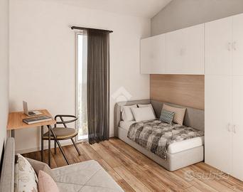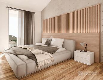 Alla sinistra della zona living si sviluppa la prima zona notte, dove un pratico disimpegno dà accesso alla luminosa camera matrimoniale. Quest'ultima è servita da un ampio bagno finestrato, da una pratica lavanderia e ha accesso diretto al secondo terrazzo abitabile di 11 mq. Ideale per rilassarsi con il massimo della privacy.