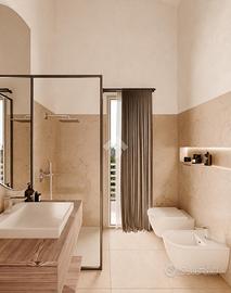 Un secondo disimpegno porta all'altra zona notte, in cui sono ospitate un'accogliente camera matrimoniale e una spaziosa camera doppia, entrambe servite da un elegante bagno finestrato.