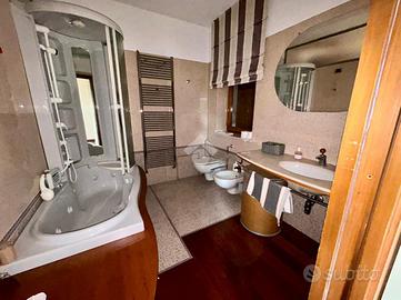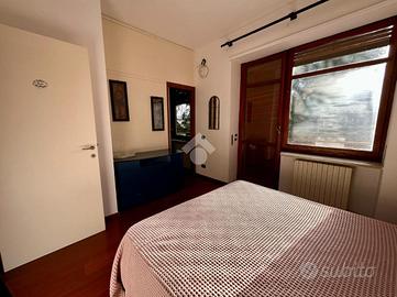 In zona residenziale e soleggiata, villa indipendente con ampio giardino e cortile privati. Disposta su tre livelli oltre al piano interrato si compone di: PIANO TERRA: Alloggio di Ingresso su Salone con vetrata sul giardino, Salotto/Studio verandato, Cucina abitabile, Camera da Letto e doppi servizi. PIANO PRIMO: Alloggio di Ingresso su Salone, Cucina abitabile, disimpegno, due Camere da letto di cui una con cabina armadio e sala da bagno-spa con vasca e doccia idromassaggio servita da casse acustiche per la musica-terapia e altro Servizio con doccia. Sempre al medesimo Piano, con accesso indipendente da scala esterna altro appartamento di Ingresso living su soggiorno con angolo cottura, Camera da letto e Bagno. Volendo questo immobile può essere integrato a quello adiacente. PIANO SECONDO MANSARDATO: Ingresso su Salone, Cucina abitabile, due Camere e Bagno con doccia.