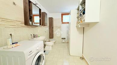 Proponiamo la vendita di una porzione di quadrifamiliare nella zona di Casal Bernocchi precisamente in Via Pavullo nel frignano. L'immobile allo stato attuale e' cosi composto: al piano terra ampio salone con cucina a vista, una camera da letto, un bagno; al piano mansardato una camera e un bagno; al piano seminterrato sala con cucina a vista, camera da letto, bagno e ripostiglio. Dispone di doppia entrata rendendo l'immobile diviso in due unita' abitative autonome. Ottimo stato interno, dotato di aria condizionata e riscaldamento autonomo. Completano la proprieta' un ampia corte esterna con barbecue e posto auto scoperto.