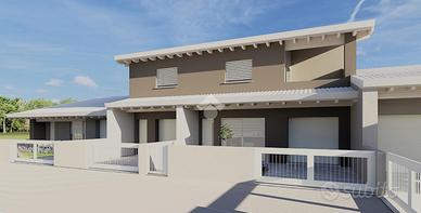 ROVERBELLA - Villa a schiera d'angolo di nuova costruzione, in costruzione nel 2025. Questa abitazione, di 150 mq, si sviluppa interamente al piano terra, offrendo una comoda distribuzione degli spazi. L'immobile si distingue per un ampio giardino che circonda la casa su tre lati, ideale per chi ama vivere all'aperto. La zona giorno si apre su un portico, perfetto per momenti di relax e convivialità. Gli interni sono caratterizzati da travi in legno a vista, che conferiscono un tocco di calore e accoglienza. La villa dispone di quattro locali, tra cui tre camere da letto e due bagni, garantendo spazio e comfort per tutta la famiglia. L'efficienza energetica è un altro punto di forza, assicurando un'abitazione sostenibile e dai bassi consumi. Una soluzione abitativa che coniuga modernità e funzionalità in un contesto tranquillo.