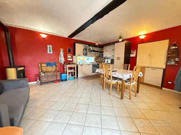 La porzione di destra è composta da due alloggi. Quello al primo piano è composto da ingresso su ampio soggiorno con cucina a vista, camera da letto e bagno ed è allo stato originale. L'appartamento al secondo piano è stato parzialmente ristrutturato ed è composto da ingresso, soggiorno con cucina a vista, due camere da letto e bagno. Il riscaldamento di questa porzione è sia tramite stufa sia autonomo a metano.