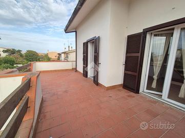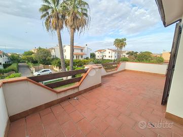 All'interno del consorzio residenziale privato di Marina Velca Mare proponiamo in vendita una porzione di villa quadrifamiliare in ottimo stato di manutenzione. Esternamente ci accoglie un giardino di 200 mq con la possibilità di un posto auto interno. La villa si sviluppa su due livelli, entrando al piano terra troviamo il soggiorno con camino che si affaccia sull' ampio portico, ideale per momenti di relax in compagnia, un pratico cucinotto e un bagno di servizio ristrutturato. Al piano superiore la zona notte comprende due camere da letto ed un bagno con doccia ristrutturato, garantendo comfort e funzionalità. Un balcone completa la proprietà, offrendo uno spazio esterno aggiuntivo. L'abitazione è stata oggetto di interventi di riqualificazione energetica grazie al bonus 110, con l'installazione di un cappotto termico, pannelli fotovoltaici, pompe di calore in tutti gli ambienti e colonnina esterna elettrica. Gli infissi interni ed esterni dotati di zanzariere sono stati sostituiti per migliorare l'efficienza energetica, assicurando un ambiente confortevole in ogni stagione! L'immobile viene venduto completamente ammobiliato.
