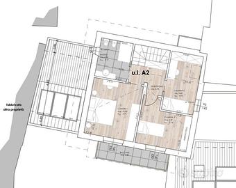 Salendo le scale si accede al disimpegno del secondo piano che serve tutta la zona notte, composta da tre camere di cui la matrimoniale e una singola servite da balcone, oltre a un bagno finestrato e completo di doccia. Caratteristica del piano notte sono le travi in legno a vista.