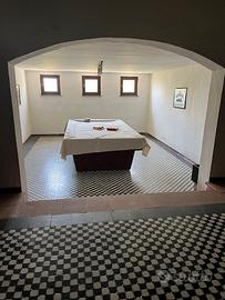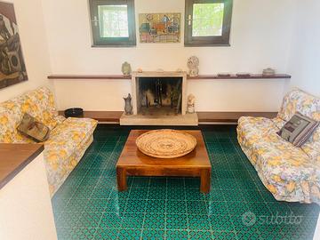 Cantina con caminetto, zona living con uscita su giardino ampio e piantumato.