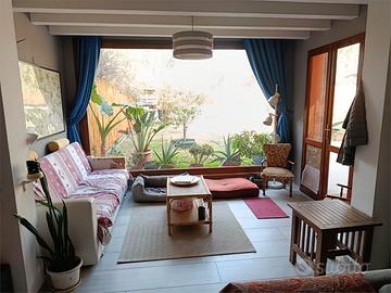 Quartu S.E., via Leonardo da Vinci zona, a due passi dal mare, in zona riservata e tranquilla villa a schiera composta da ingresso con ampio loggiato con vista sul giardino, salone con caminetto, cucina semi abitabile, antibagno e bagno.