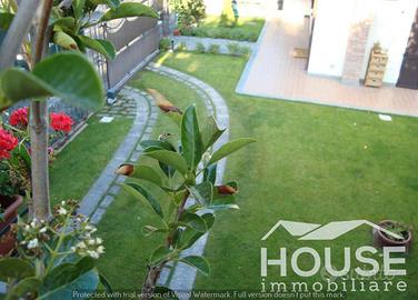 All'esterno vi è un ampio giardino circostante con piscina a sfioro di dimensioni 10×5 e una comodissima zona adibita a taverna/depandance con servizio privato, forno a legna, barbecue, e cucina. La parte esterna si presenta in ottimo stato, fornito di impianto di irrigazione, prato inglese, ampi spazi adibiti a terrazzi, zona solarium/relax, docce esterne e area adibita al ricovero delle auto.