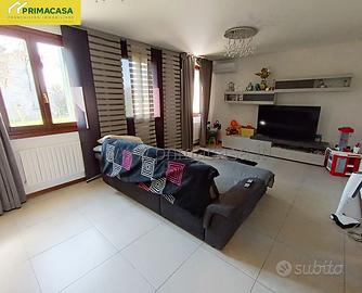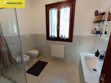 Siamo lieti di presentare una recente porzione di villa bifamiliare, situata a breve distanza dal centro, immersa in un contesto tranquillo e circondata da un ampio giardino privato di 1100 mq. Questa proprietà, sviluppata su due livelli, offre un'ottima soluzione abitativa per famiglie o per chi desidera un ambiente spazioso e confortevole. Al piano terra, si sviluppa la zona giorno, caratterizzata da un ingresso accogliente che conduce a una cucina ben attrezzata ed ad un luminoso soggiorno. Completa il piano un disimpegno, un bagno/lavanderia funzionale e un ampio porticato di servizio di 45 mq, ideale per trascorrere momenti di relax all'aperto o per organizzare pranzi e cene con amici e familiari. Salendo al piano superiore, troviamo tre camere matrimoniali, tutte spaziose e ben illuminate, un bagno a servizio del piano ed un disimpegno. Inoltre, è presente un comodo spazio che può essere adibito a zona hobby o trasformato in una cabina armadio, offrendo così ulteriore versatilità all'immobile. A completare l'offerta, direttamente collegato anche dall'interno dell' abitazione abbiamo un garage di 30 mq con il locale caldaia. Per garantire il massimo efficienza energetica, la casa è dotata di una caldaia ibrida, sostituita nel 2021, di un impianto fotovoltaico da 8 kWh e di pannelli per il solare termico da 4 kWh. Questi elementi non solo contribuiscono a ridurre i costi energetici, ma rendono anche la casa più sostenibile. Infine, è importante sottolineare che l'immobile verrà consegnato completamente arredato, permettendo così ai nuovi proprietari di trasferirsi senza alcun pensiero. Non perdere l'opportunità di visitare questa splendida villa bifamiliare, ideale per chi cerca comfort, spazio e una posizione strategica. RIF 78