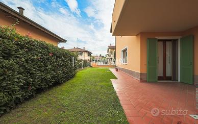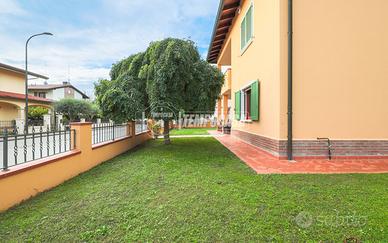 Completa l'immobile un ampio giardino che circonda l'immobile, un garage di 25mq, zona lavanderia, sottotetto e posti auto.