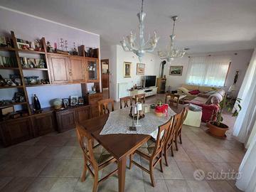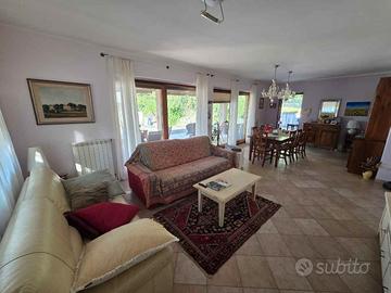 Proponiamo una villa del 2006 tutta su un unico livello su un lotto di 1400 mq circa. Composta da salone doppio con ampie vetrate e uscita nel porticato di 40 mq, spaziosa cucina abitabile con canna fumaria, due camere matrimoniali di cui una con cabina armadio, due camere singole, due bagni finestrati e comoda lavanderia. Inoltre ampia soffitta finestrata con predisposizione di terzo bagno e di scala a chiocciola interna. Giardino piantumato con fogolar esterno ed irigazione automatica. Allarme. Clima doppio. Classe "D". Zona immersa nel verde! Possibilità arredo completo.
